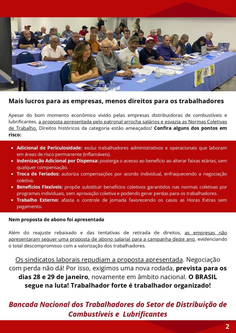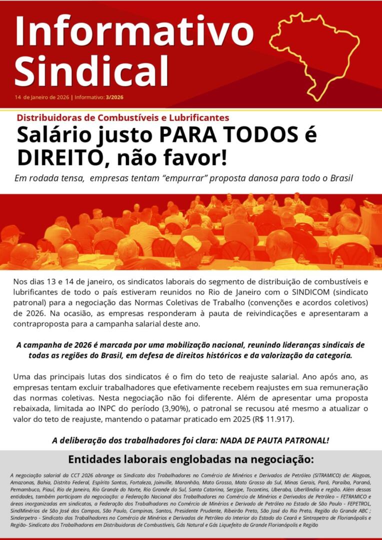 20 de janeiro de 2026🚨 Este informe foi elaborado pela Bancada Nacional dos Trabalhadores do Setor de Distribuição de Combustíveis e Lubrificantes.