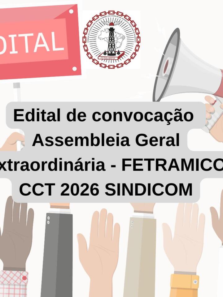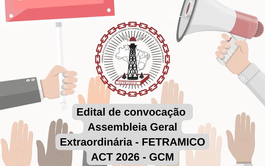Pelo presente Edital a FEDERAÇÃO NACIONAL DOS TRABALHADORES NO COMÉRCIO DE MINÉRIOS E DERIVADOS DE PETRÓLEO – FETRAMICO convoca os (as) trabalhadores (as) da categoria nas areas inorganizadas, principalmente os empregados na Empresa GCM COMÉRCIO DE LUBRIFICANTES nos estados do Acre e Rondônia para participar da Assembleia Geral Extraordinária Virtual- Age-V a ser realizada no dia 13 de Fevereiro de 2026 (sexta-feira),