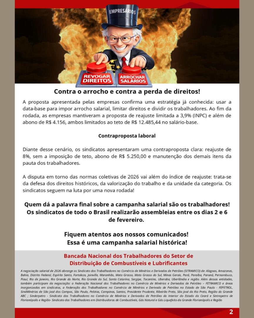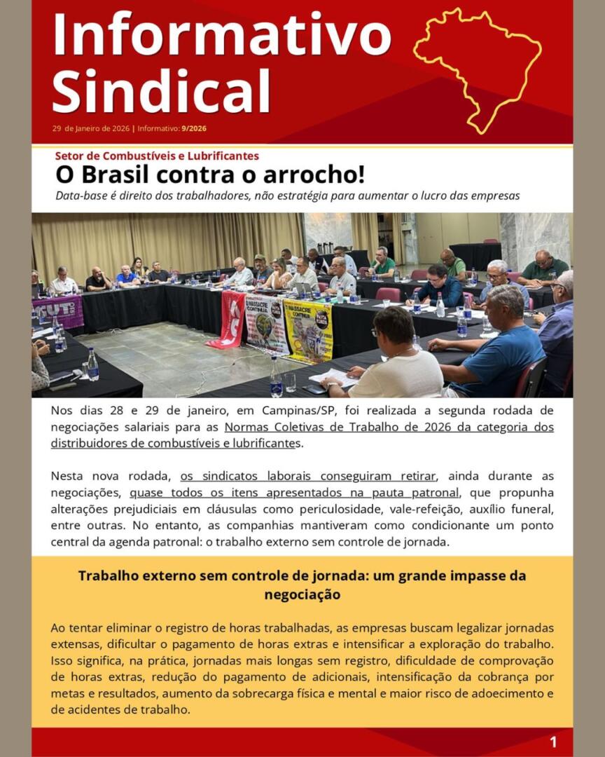 26 de janeiro de 2026🚨 Este informe foi elaborado pela Bancada Nacional dos Trabalhadores do Setor de Distribuição de Combustíveis e Lubrificantes.