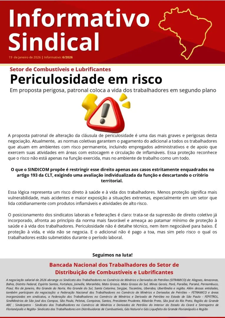 26 de janeiro de 2026SINDICOM | Informativo Sindical 6/2026 – Adicional de Periculosidade em risco