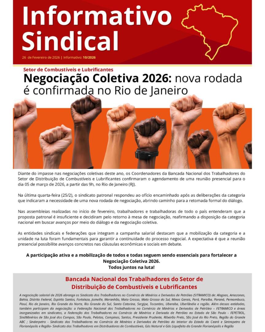 13 de fevereiro de 2026SINDICOM | Informativo Sindical 10/2026 – Continuidade da Negociação Coletiva